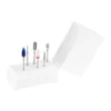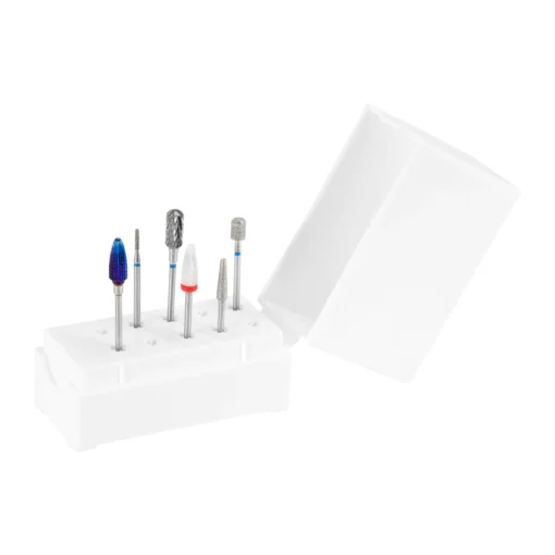 Drill bit holder – white has 10 holes, which makes it easier to store and organize the drill bits necessary for manicure. The plastic base with a cover protects against the accumulation of dirt, dust and other contaminants, thus maintaining occupational hygiene. A durable and stable stand will allow you to keep greater order and much better organization when working with the nail drill.